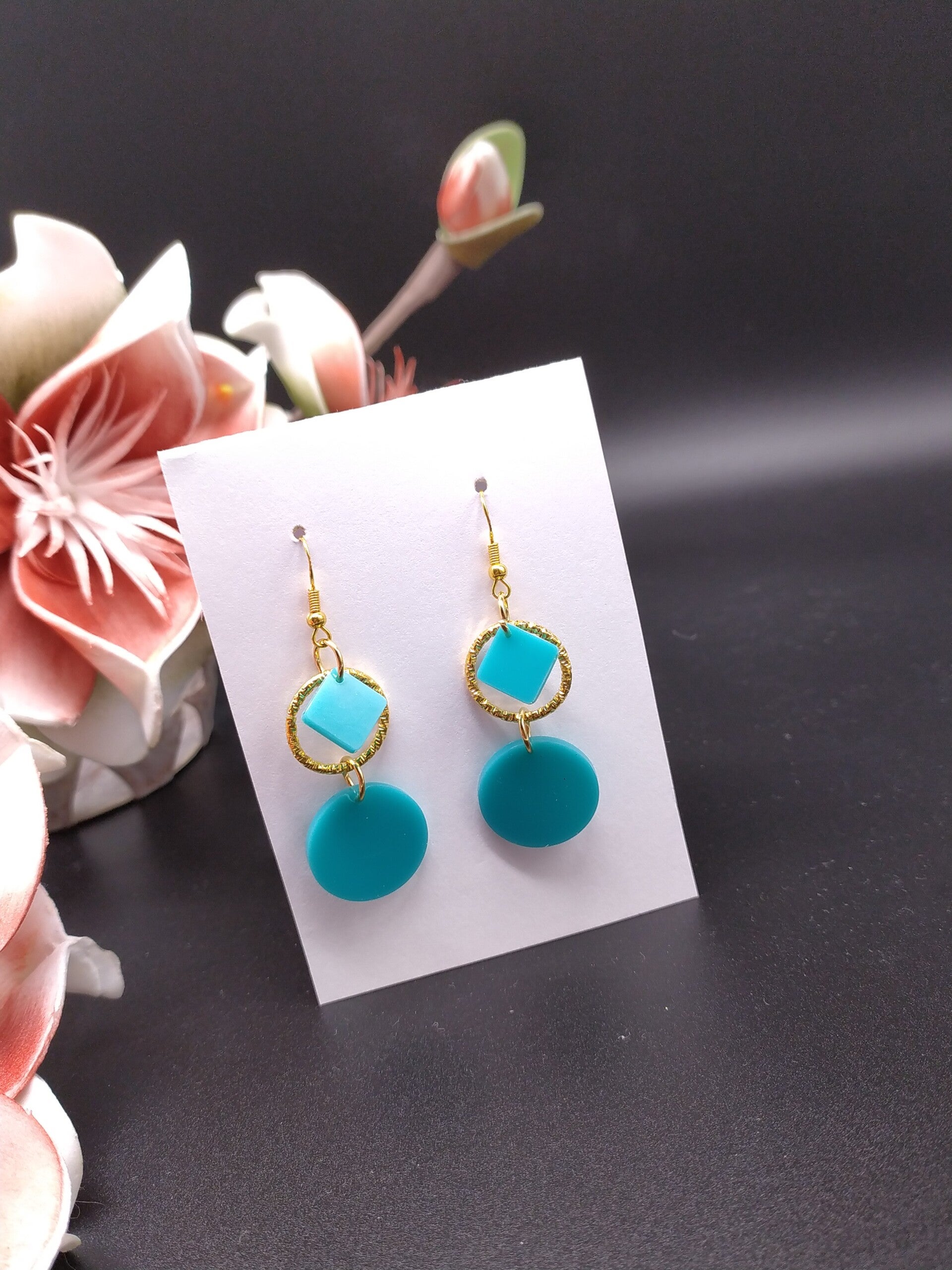 Boucles d'oreilles pendantes Cascade Acier inoxydable 304 ronds résine bleue lisse brillante