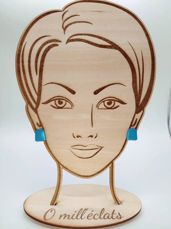 Clous d'oreilles Emeraude bleu vert Argile polymère pro Acier inoxydable argent