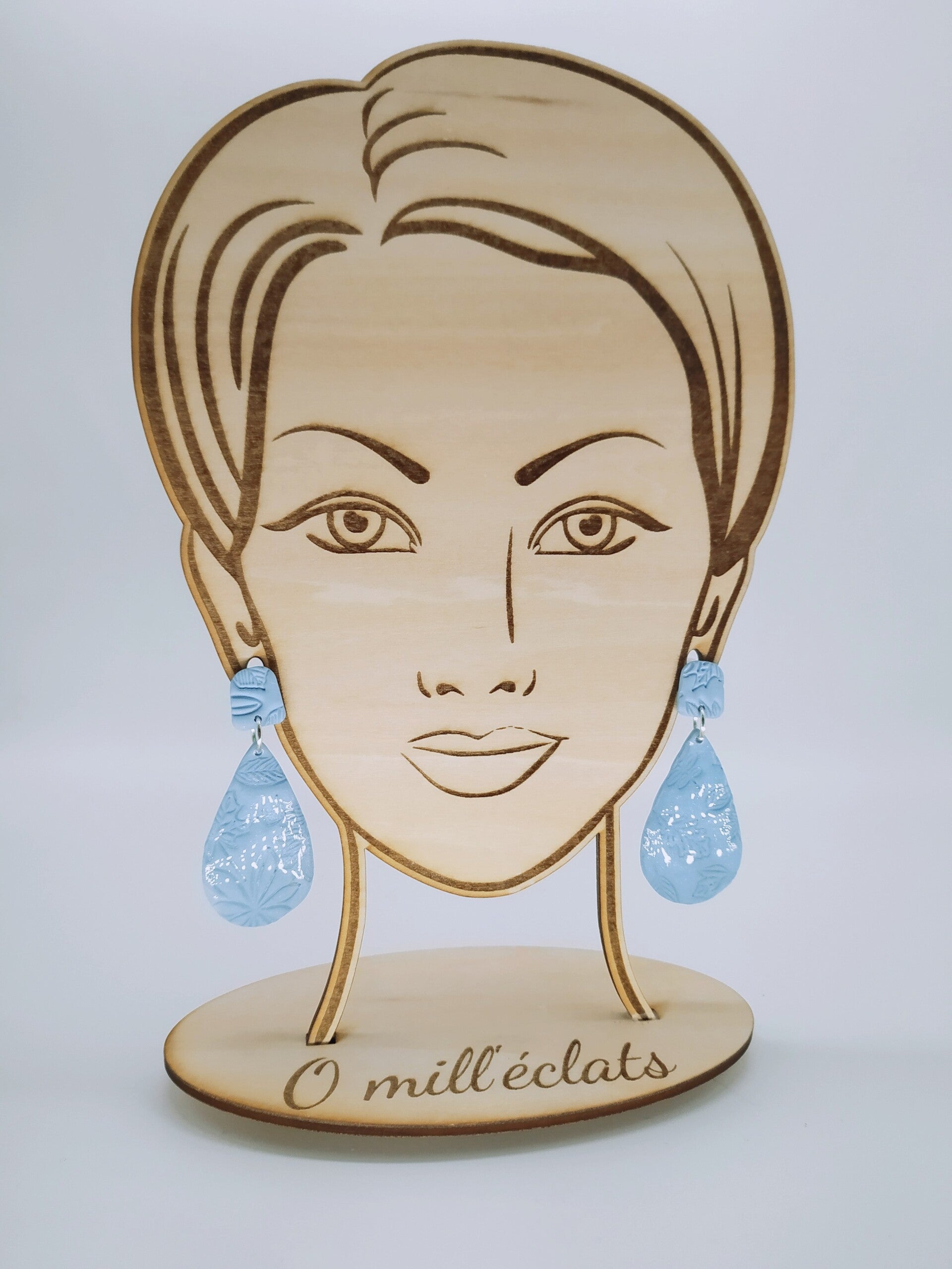 Boucles d'oreilles pendantes Rêve bleu Argile bleu Acier inoxydable argent