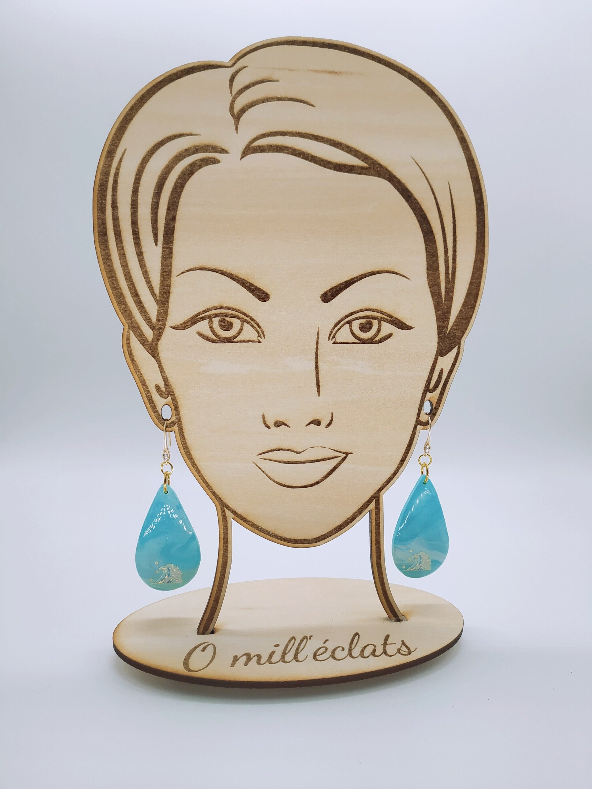 Boucles d'oreilles pendantes Ciel tropical Argile bleu Plaqué or 18k