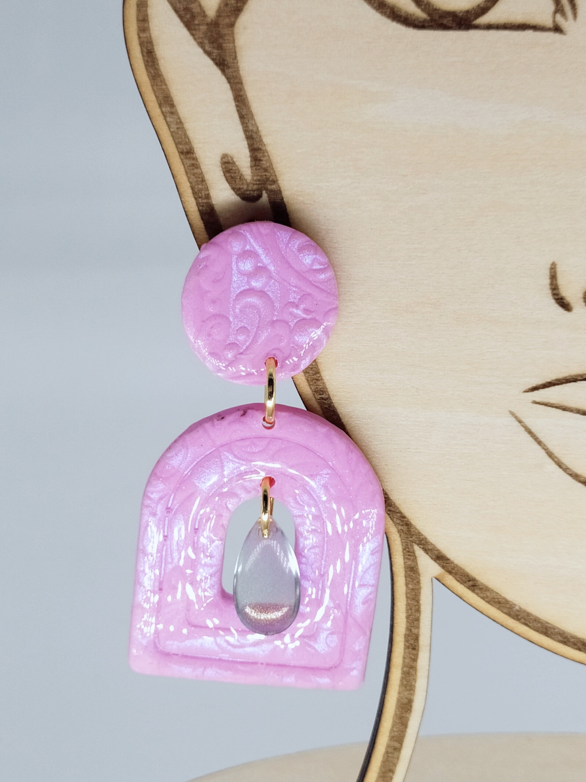 Boucles d'oreilles pendantes Elégance Argile polymère pro rose reflets nacrés Acier inoxydable or