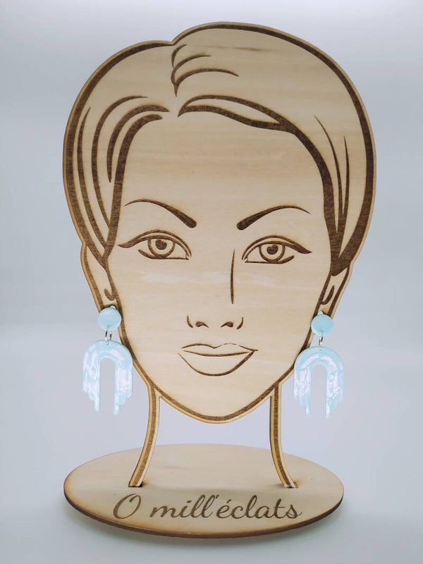 Boucles d'oreilles pendantes Eclat de paradis Argile vert aux reflets roses Acier inoxydable argent