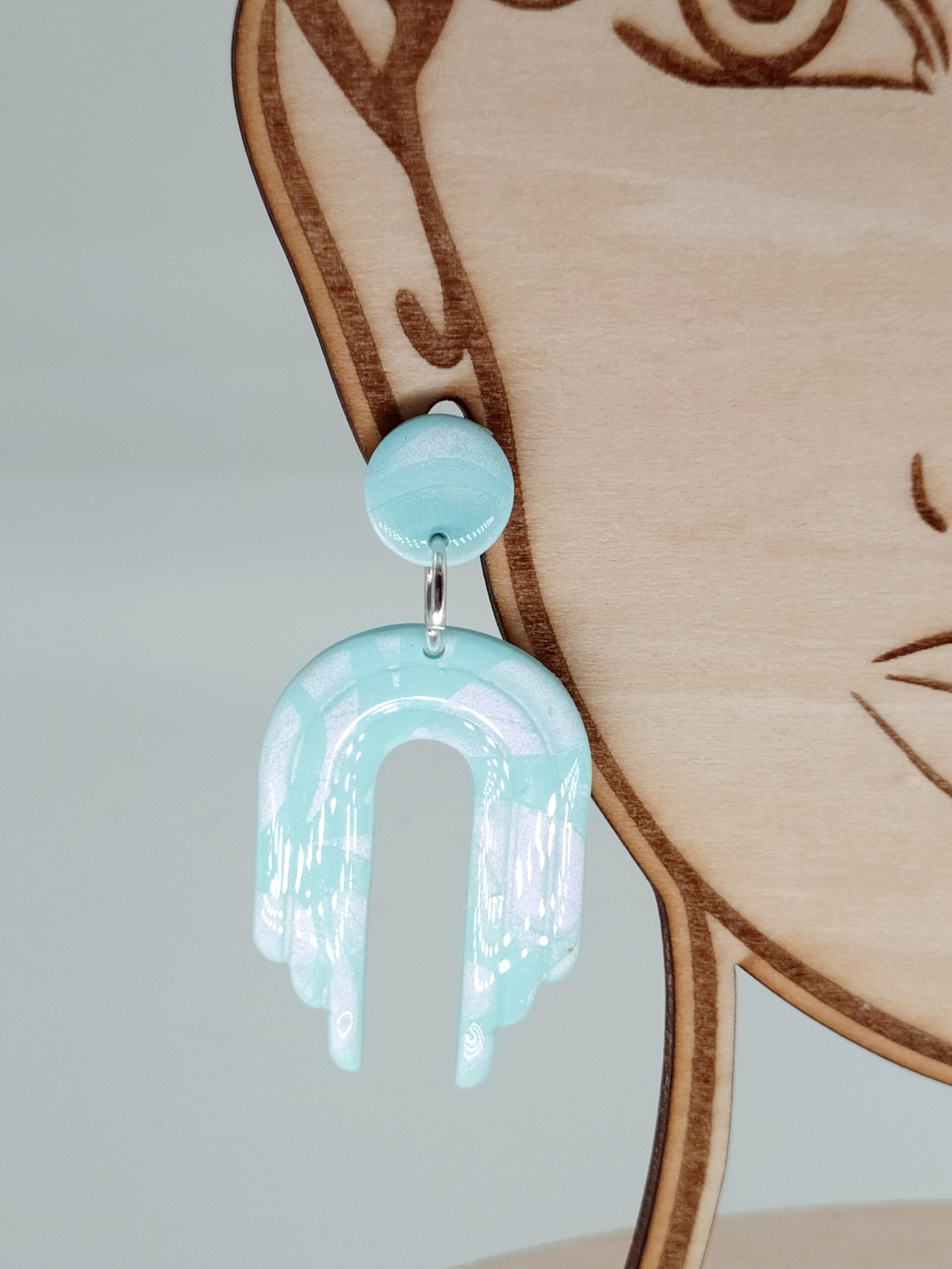 Boucles d'oreilles pendantes Eclat de paradis Argile polymère pro vert aux reflets roses Acier inoxydable argent