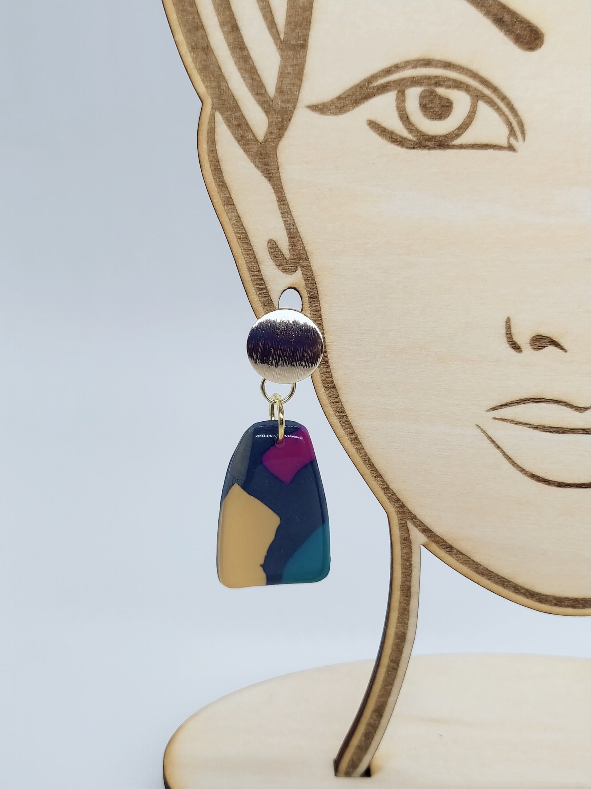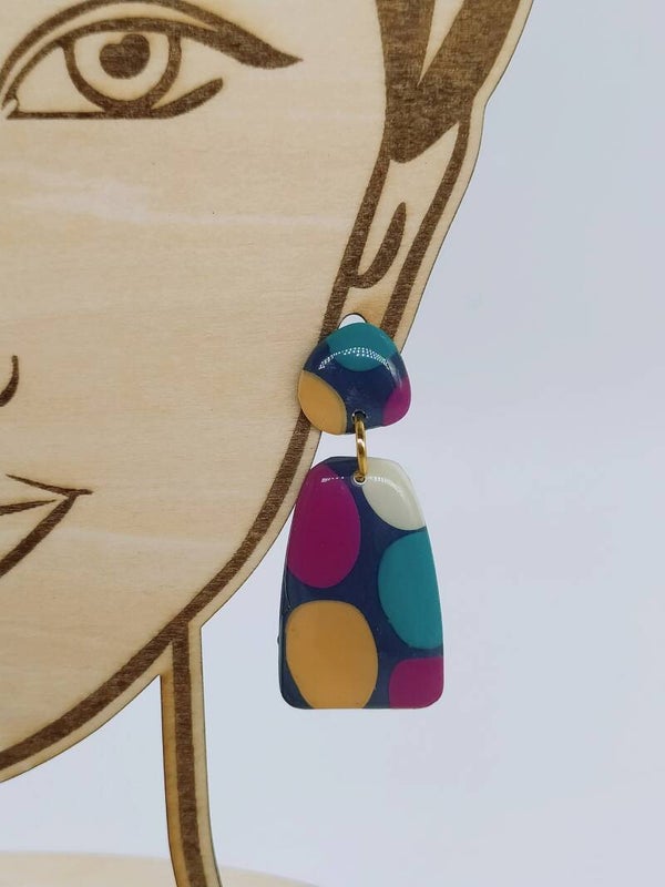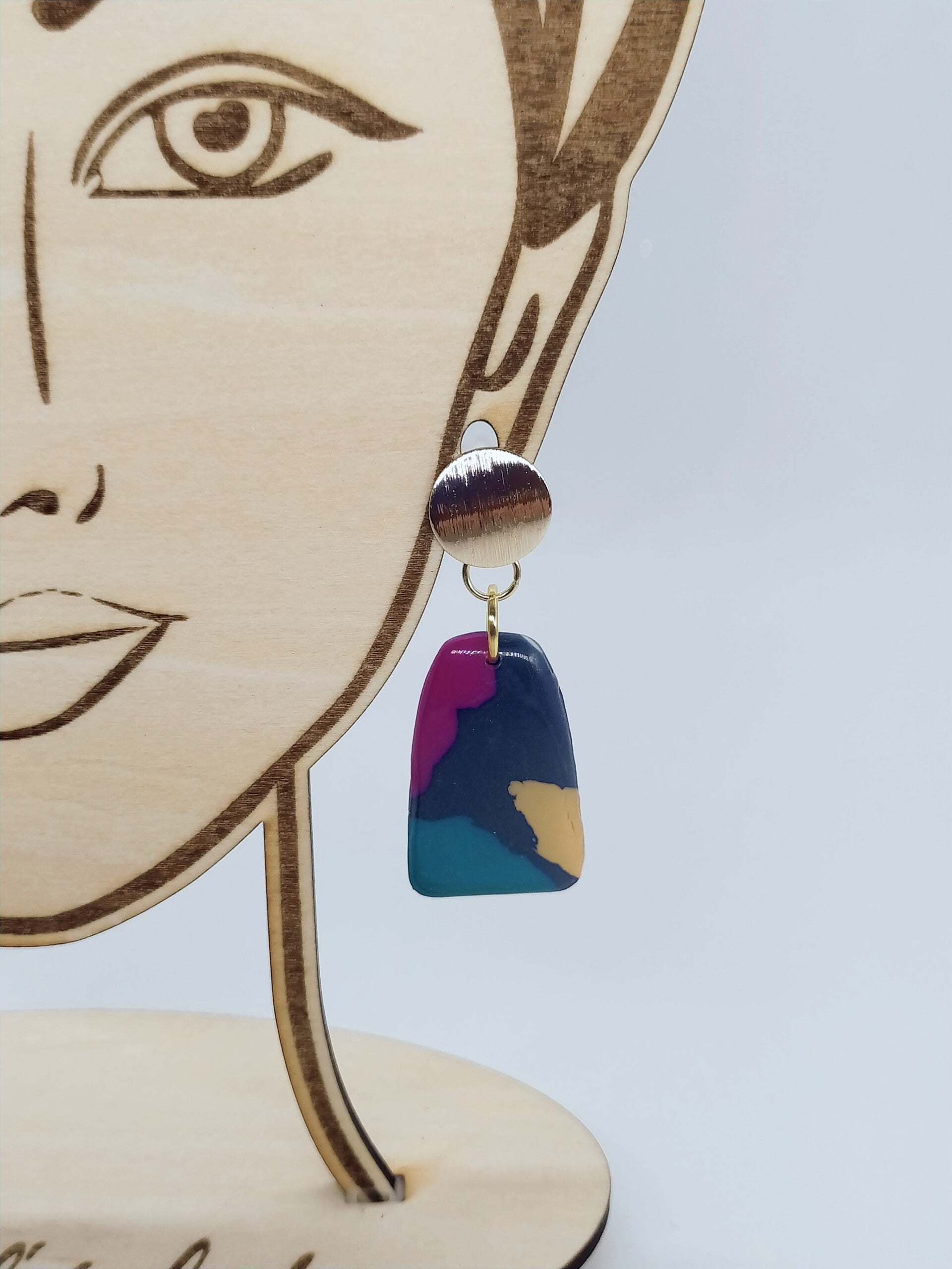 Boucles d'oreilles pendantes Pépite Argile bleu/rose/crème/vert Acier inoxydable or