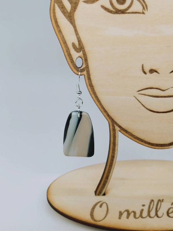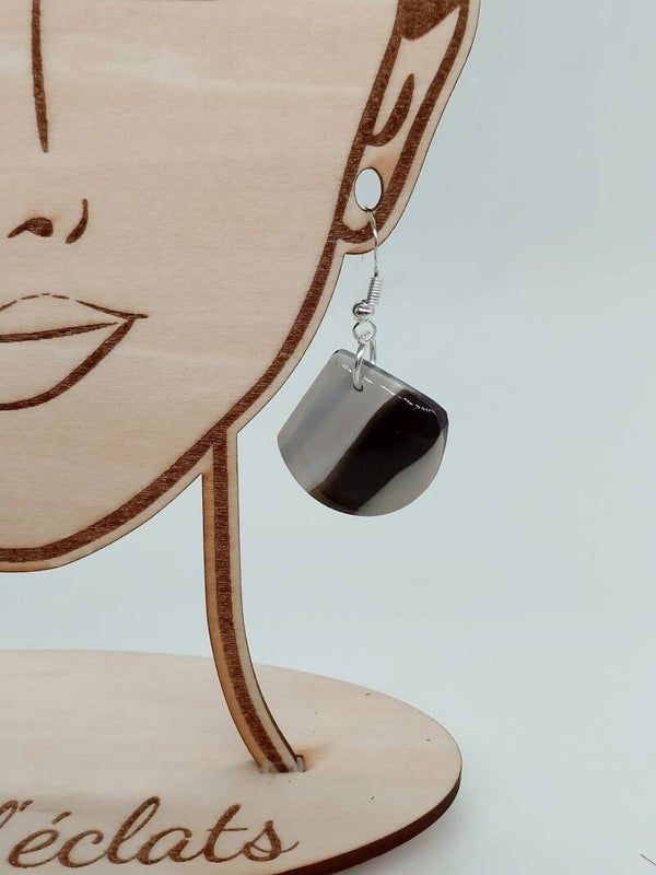 Boucles d'oreilles pendantes Sable noir Argile noir-beige Acier inoxydable argent
