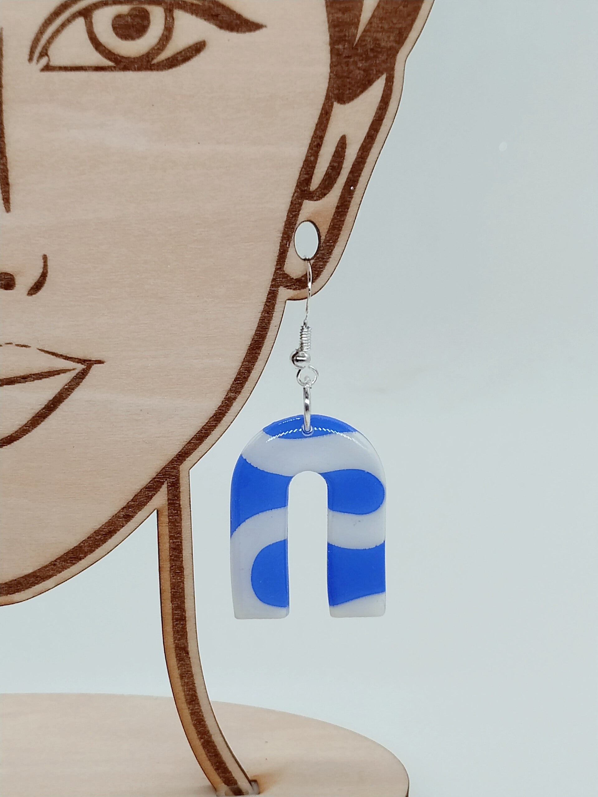 Boucles d'oreilles pendantes Vague marine bleu-blanc Acier inoxydable argent
